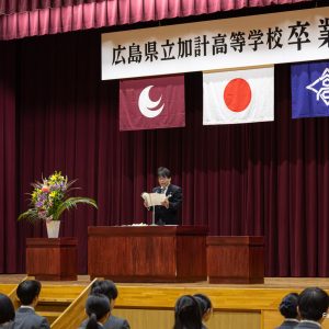 2025年3月9日、地元の広島県立加計高校等学校の卒業式が挙行され、安芸太田町活性化委員会代表の来賓として、出席してきました。