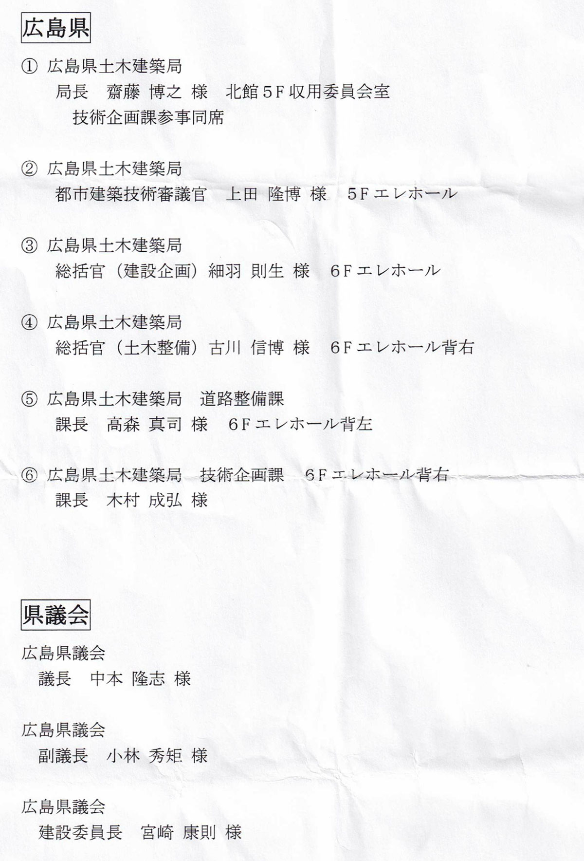 要望活動 広島県安芸太田町管内の道路防災事業の重点整備要望 2021.10.12 要望活動 中本隆志県議会議長、斉藤土木建設局長を訪ね、広島県安芸太田町管内の道路防災事業の重点整備を要望しました。 国旗及び国歌に関する法律前の記事 国道186・191・433重点整備の要望へ、斉藤鉄夫事…次の記事